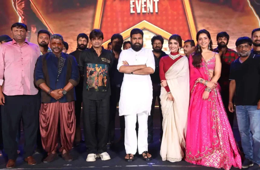 Power Star Pawan Kalyan and Harish Shankar’s much-awaited Ustaad Bhagat Singh will be hitting the screens as an Ugadi special on March 19th. Today, the team celebrated the film’s pre-release event in a grand way, with a massive crowd gracing the occasion.